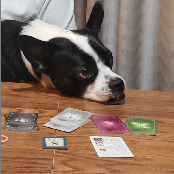 We started our board game reviews in August 2020 and we never expected it to take off as quickly as it has. We started with a picture of our dog Sushi on Instagram (if any of you are curious why we are Sushiball Games, Sushiball is one of our dogs nicknames). Sushi loves to be at the table whenever a board game is being played, we’re not sure if it is because he likes the games or the attention!