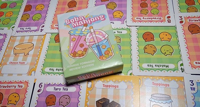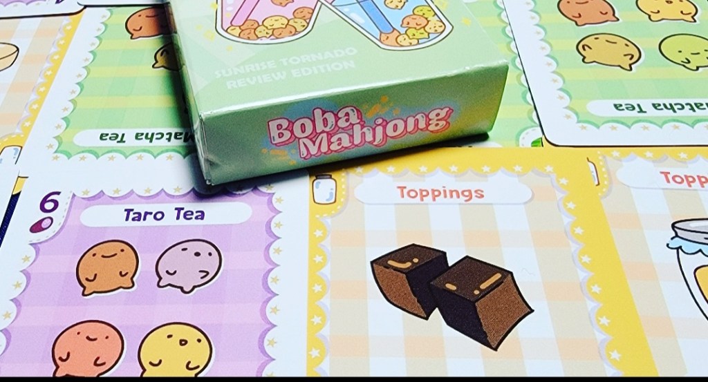 Boba Mahjong by Sunrise Tornado is a fast, fun, competitive set collecting rummy style game for two players that we were sent for review! It is coming to Kickstarter this month on August 23rd. We thoroughly enjoyed the pacing, artwork, and point scoring system of this title. There is a lot of action packed into this small packaged card game.