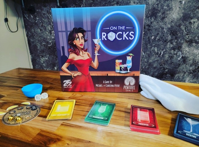 We were given the opportunity to review On the Rocks by 25th Century Games. The premise is simple, you are a bartender trying to make the best drinks, faster, and better than the other bartenders and thus make the most money before last call. It is a unique premise and the theme is carried throughout the game in a charming manner. The game goes as far as to say the recommended age is 14+ (We Card).