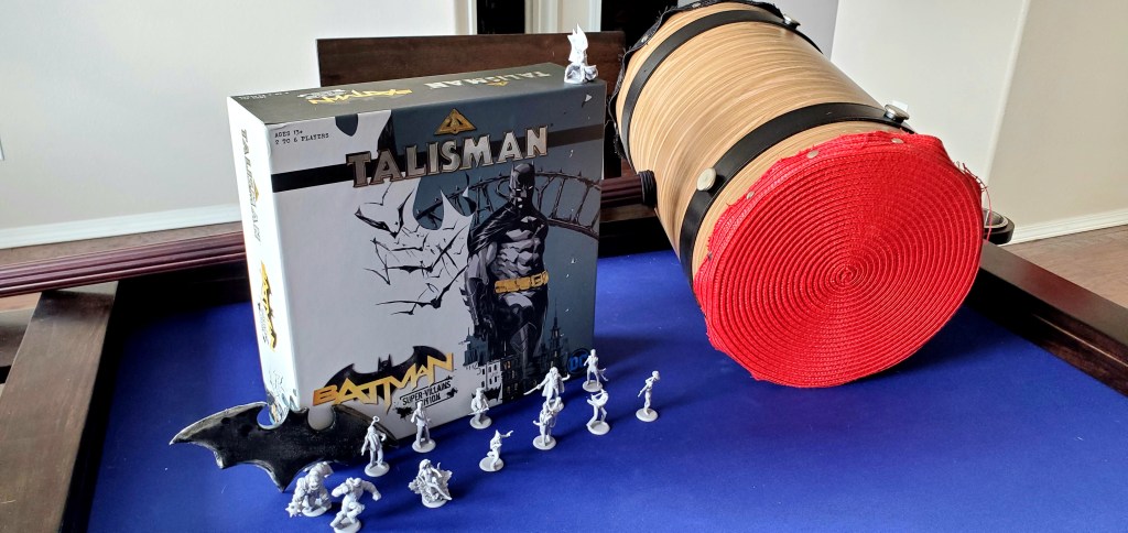 We had the opportunity to review Talisman: Batman Super-Villains Edition published by The Op. The artwork by Ross Taylor is superb and immediately sucks you into the world of DC. The theme for the game is obviously dark and brooding, as all modern Batman things are and the game does a fantastic job of setting the ambiance. In this version of Talisman, you play as characters from Batman’s rogues gallery and try to escape Arkham Asylum while trying to stay clear of the Dark Knight. Simply reading the rulebook will get you excited to thwart Batman.