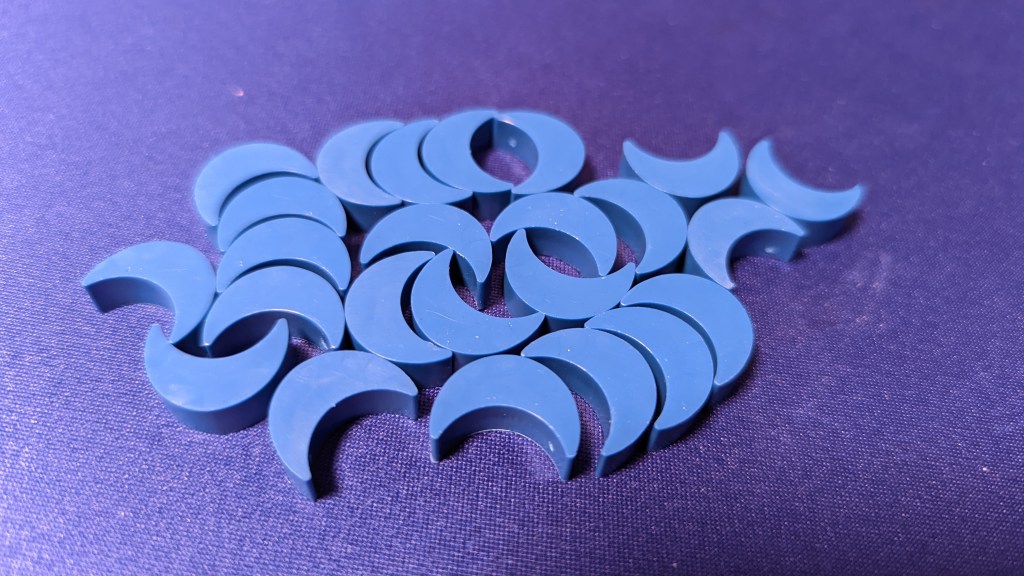 Strategy: Moderate. While luck does play a large role in gameplay, there is strategy in the game. You have to decide which cards you play with, you select when or if you’ll use lightning bolts, you can try to score multiple cards or focus on one. Trying to score more moons than others or trying to get as many stars as possible are just as valid as not worrying about moons and not worrying about stars.