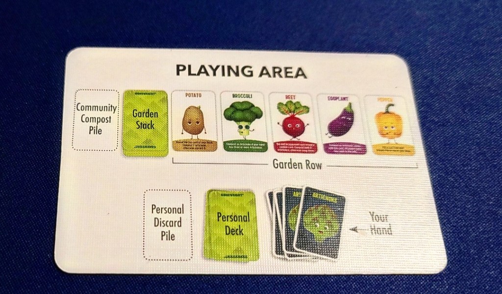 One game we played was won with a hand that included three Artichokes and two corn cards. Corn cards allow you to compost an artichoke and put a garden row card at top of your deck). The player chose a third corn card from the garden row as the first turn action, composted an artichoke, and placed a garden row vegetable in the deck and repeated this with the next two corn cards. This meant that there were for sure three non-artichokes at the top of the deck. Then when drawing, all five came up non-artichokes.