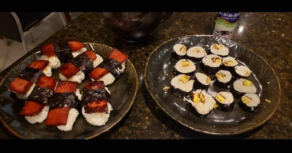 Bonus pictures of some musubi and ramen we made awhile back: