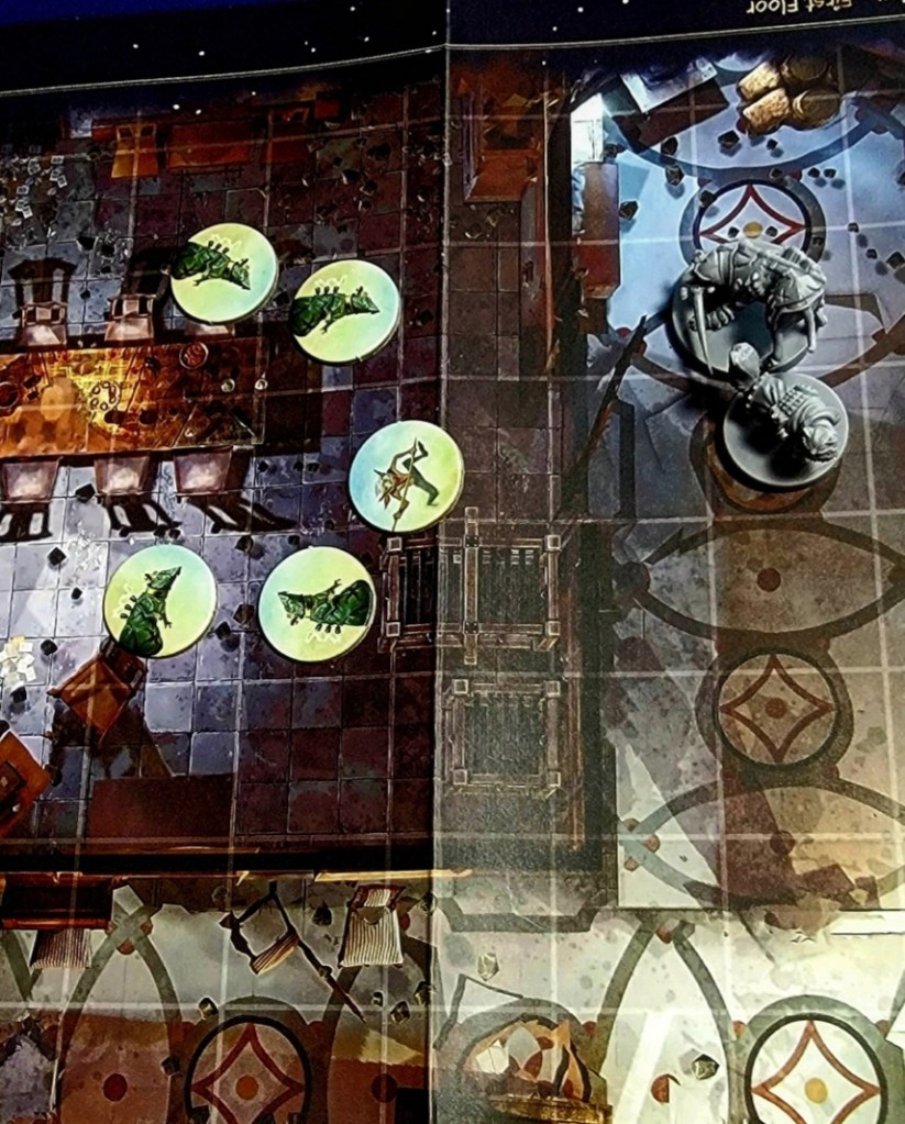 The maps offered are small and compact. Battles feel a little limited because of this but players can have fun in tight quarters as they battle through the baddies. The maps themselves are brightly colored and help you feel immersed in the story. It can be a little difficult to assess certain terrain squares as some of the areas are foggy or have crystals on them which can make it tough to see if you can climb or hide behind certain objects. The layouts of the maps flow well and are great tools. There are 4 maps included in the Starter Set but each map is not used equally. This is true of almost any type of game and really depends on what your players like.