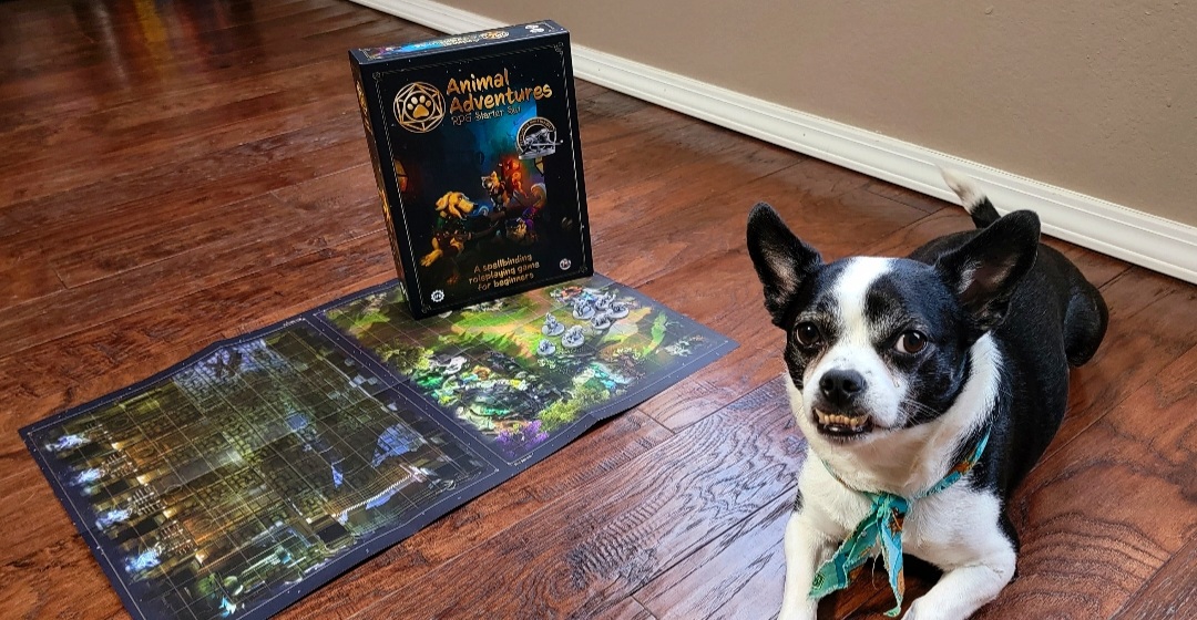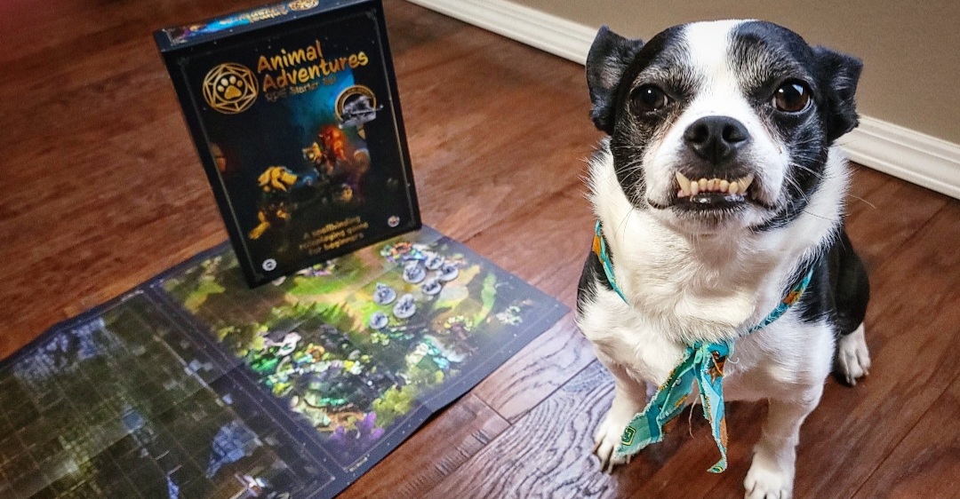 We were given the opportunity to review the Animal Adventures: RPG Starter Set as well as Dungeons and Doggies Vol. 1 and Vol. 2 by Steamforged Games. Animal Adventures is a 5e compatible RPG Starter Set. For those of you who aren’t familiar with RPG’s, it is a role playing game wherein you pretend you are a specific character in a specific world that is built as you play (more or less). 5e compatible means that you can play the game while using the ruleset for Dungeons & Dragons 5th Edition (D&D). This game takes the rules of D&D and instead of playing as humans, elves, dwarves and the like, you can play as Beagles, Chihuahuas, Boxers and many dog breeds. We will discuss how exciting the game can be while avoiding any spoilers about the story itself.
