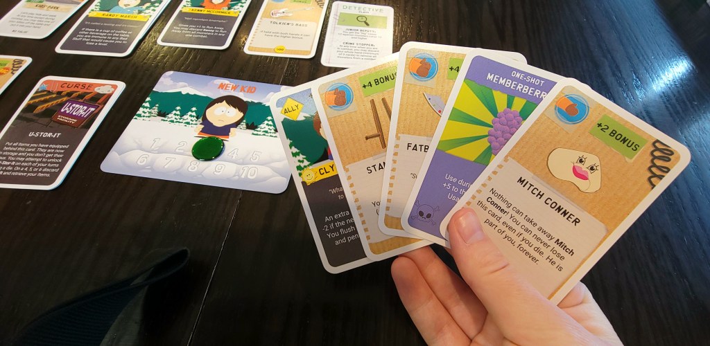 Have we played any other titles by this publisher?: Yes, we have many games by The Op that we enjoy. Not only that, we’ve played a good number of the Munchkin games. To be honest, there’s some Munchkin titles we like better than others, and the South Park one is a solid title that we’ve enjoyed a lot.