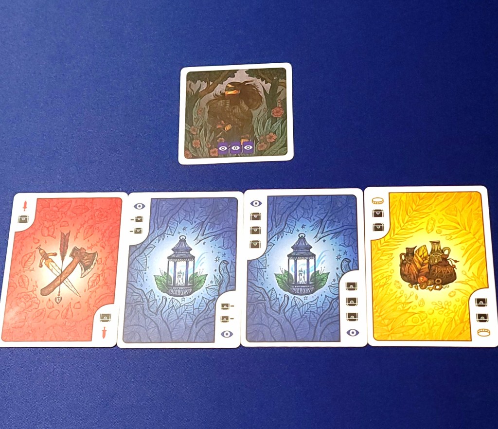 Strategy: Strategy can be difficult in this game due to the balance issues we found. The game does have a lot of areas where strategy is encouraged. For one, when players are choosing what type of win they are going for, they need to be conscientious of how many treasure icons are in their storehouse, because if they have more than seven treasure icons they can only win as a scoundrel/if the team fails to meet their goals. The individual player storehouse consists of a set-aside card pile, which players contribute one card to each round. They can switch out this card one-for-one at any time with cards from their hand, so this can be part of any player’s strategy while playing as well.