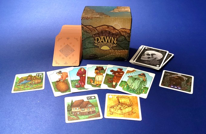In Dawn, a newly released card game sent to us for review by Green Meadow games, players secretly choose if they want to be an ally, helping their team towards a shared victory building a village or a scoundrel, helping themselves to treasure. It is not revealed until the end of the game whose side each player is on.