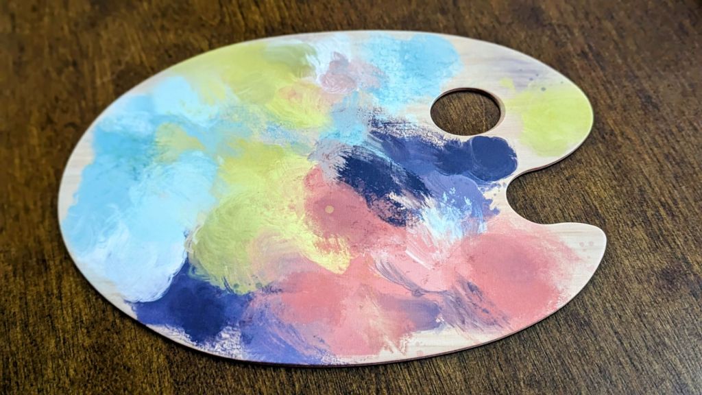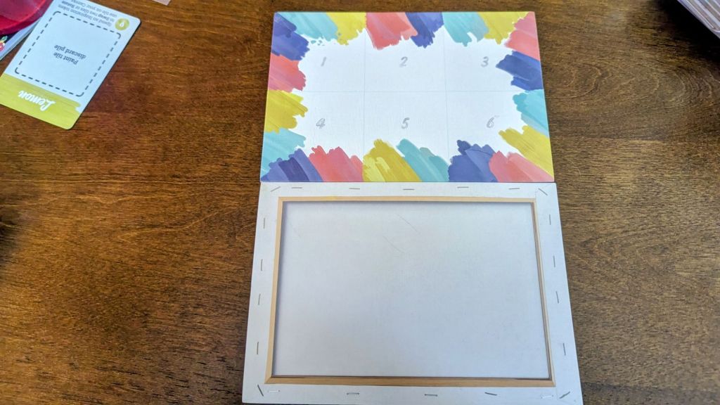 Artwork: Wonderful. Not only were the color tones chosen very nice we really liked the artistic pieces that were creates for this game. The pallete board for example looking like a paint pallete and being the location of the paint cards you choose from was both artsy and functional. The first player marker being a paint brush is a very nice-looking wooden token. The round cards are marked by cards that display a paint tube with paint coming out in the shape of a number that indicates Round 1, 2, or 3 which we enjoyed the design of.