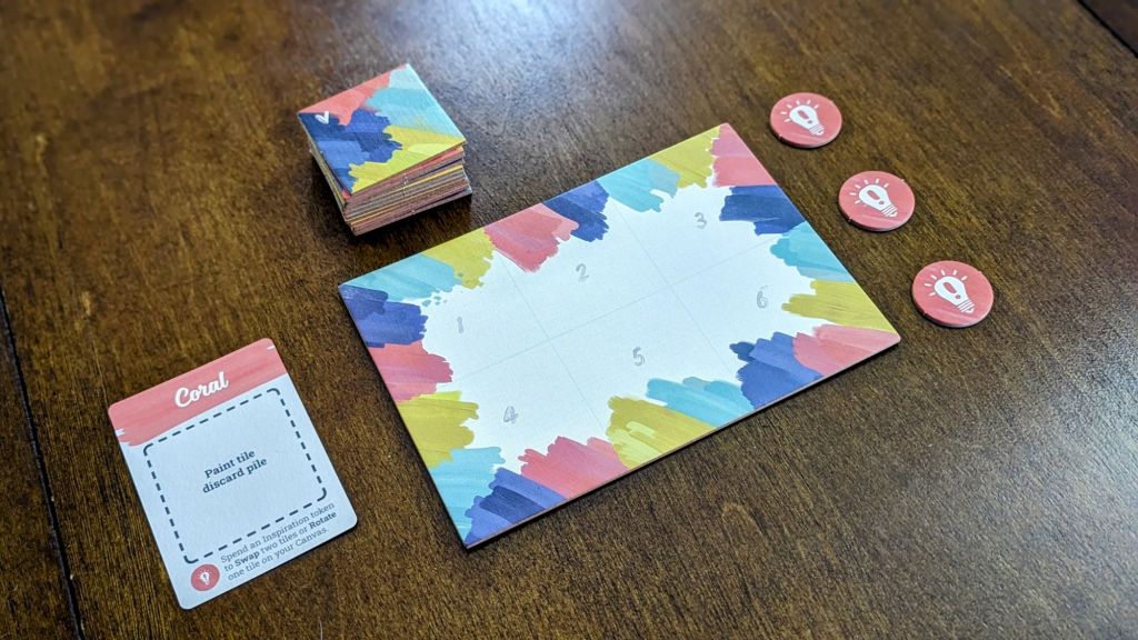 Game length: Around 35 to 45 minutes for us, but that’s likely because the players took the tile choosing very seriously and spent time contemplating each choice, as artists must.