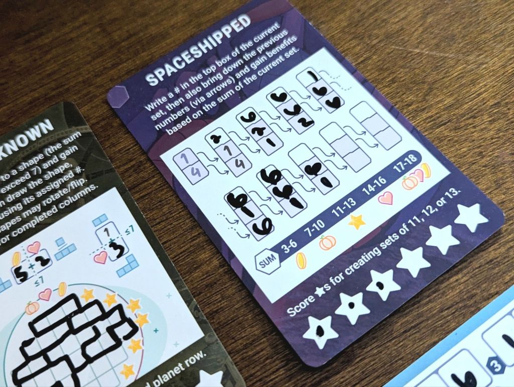 Artwork: Clean, consistent, colorful. We really enjoyed how even though the games were very different on the cards, the artistic theme really brought everything together.