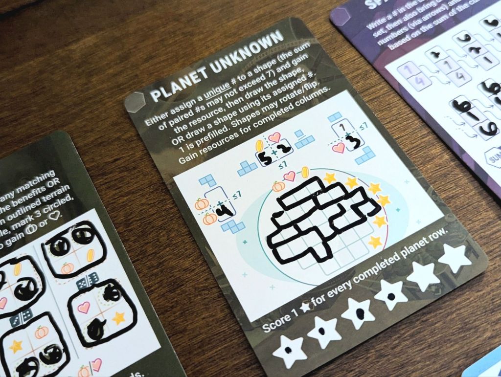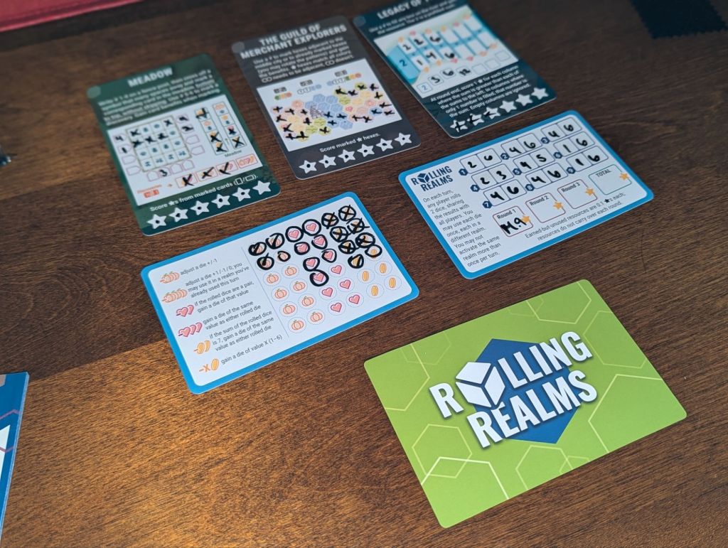 In two sentences, what do you do in the game: Each player has the same set of cards, each featuring a unique mini game (realm). The game is played over three rounds, with three cards/mini-games active per round, where players are rolling a pair of dice and choosing how to apply each dice roll to one of the cards (but not the same card) in order to gain stars and resources.