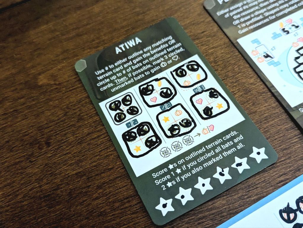 Language Barrier Playability: Hard, but can be translated. Each realm game has a little description on how it works, so players would need these translated and memorized. The actual playing/dry-erase part of the game is mostly circling or marking off different elements on the cards.