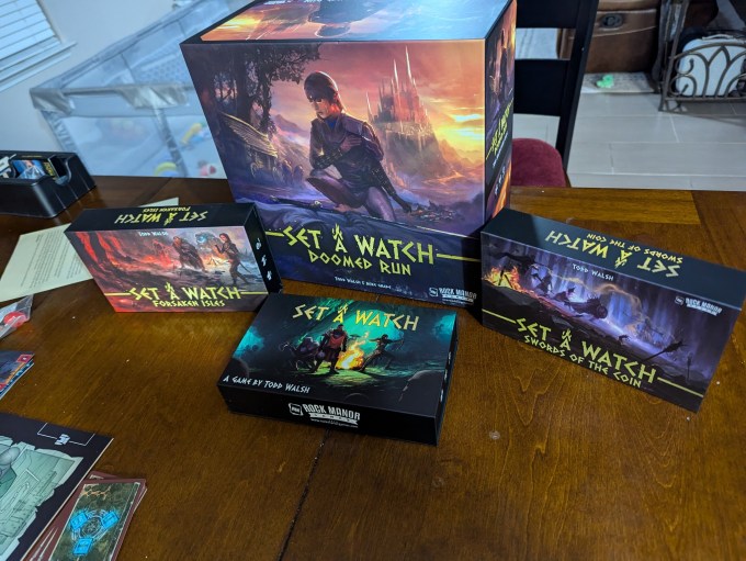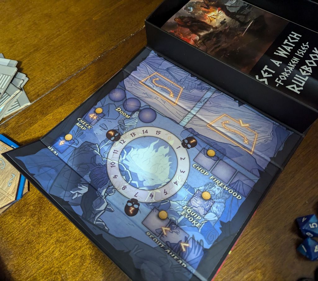 Have we played any other titles by this publisher?: Yes and no. This game is a culmination of 3 separate games, the original game Set a Watch, Swords of the Coin, The Outriders Expansion, and Forsaken Isles. So we have played all of these as part of Doomed Run as it is a culmination of these games combined into a campaign.