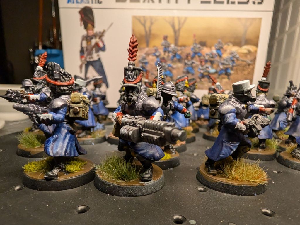Death Fields Arena by Wargames Atlantic is by far the best concept for a wargame: Aliens have kidnapped warriors/soldiers/fighters, basically anyone who battles, for centuries and pit them all against one another for sport. That sport is War and it is Death Fields Arena. This opens up the doors for literally any sort of battle and army. Anything from a group of halflings to modern day soldiers to alien hiveminds. Wargames Atlantic also mentions in one of their YouTube videos that there is a group of gorilla warrior STL files you can use, so you could even pit Dwarves against gorillas, which sounds like a blast. With the Les Grognards set, we are looking at French speaking soldiers from Napoleonic to modern times and even into the far future. These soldiers have been fighting against various threats and the one element uniting them is their language. It’s both disheartening and inspirational to see these soldiers banded together through nothing but French. Either way, these miniatures have one of the best back stories in Deaths Fields Arena and we had a chance to build and paint them.