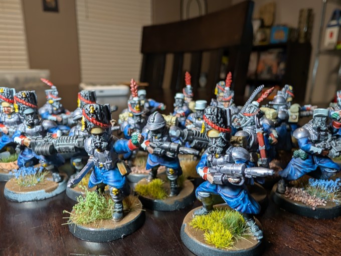 Cleaning/Prep: The models are fairly easy to clean, with mold lines that are easy to scrape off and aren’t extremely harsh. If you love to paint and need your models to be pristine, it’s not very difficult to accomplish. The hardest part is placing the little boots and that’s just because they’re so small and have such a tiny curve. Priming is a breeze as the models have exposure to your airbrush, brush, or can at pretty much all angles. If you’re finicky about your painting and need them to be perfectly painted, then you’ll definitely want to do sub assembly for any of the double-handed weapons, or really anything that isn’t a grenade or pistol. The models hold the weapons very close to the body and getting your paintbrush back in there is close to impossible on some models, particularly the particle cannon.