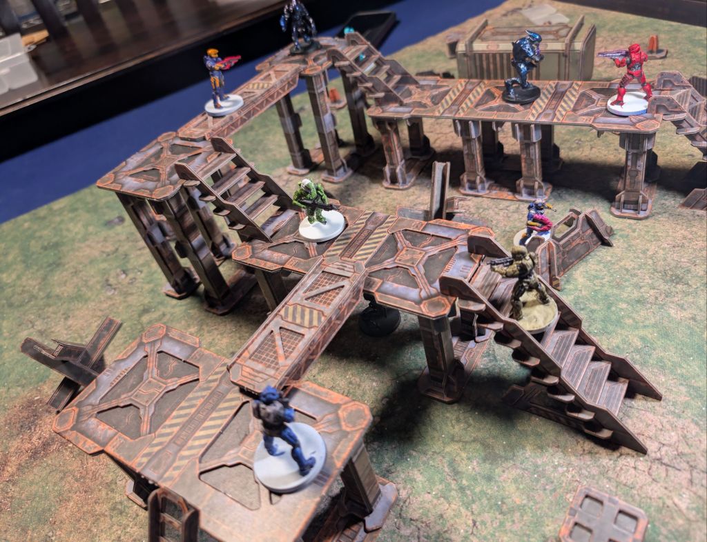 Readability: Excellent. Since the designs are printed on, this is very obviously a bunch of metal beams and platforms that reads like an industrial site of some sort. It gives haunted creepy vibes that can pass as an abandoned factory, a space themed frigate, or even Forerunner technology from Halo.