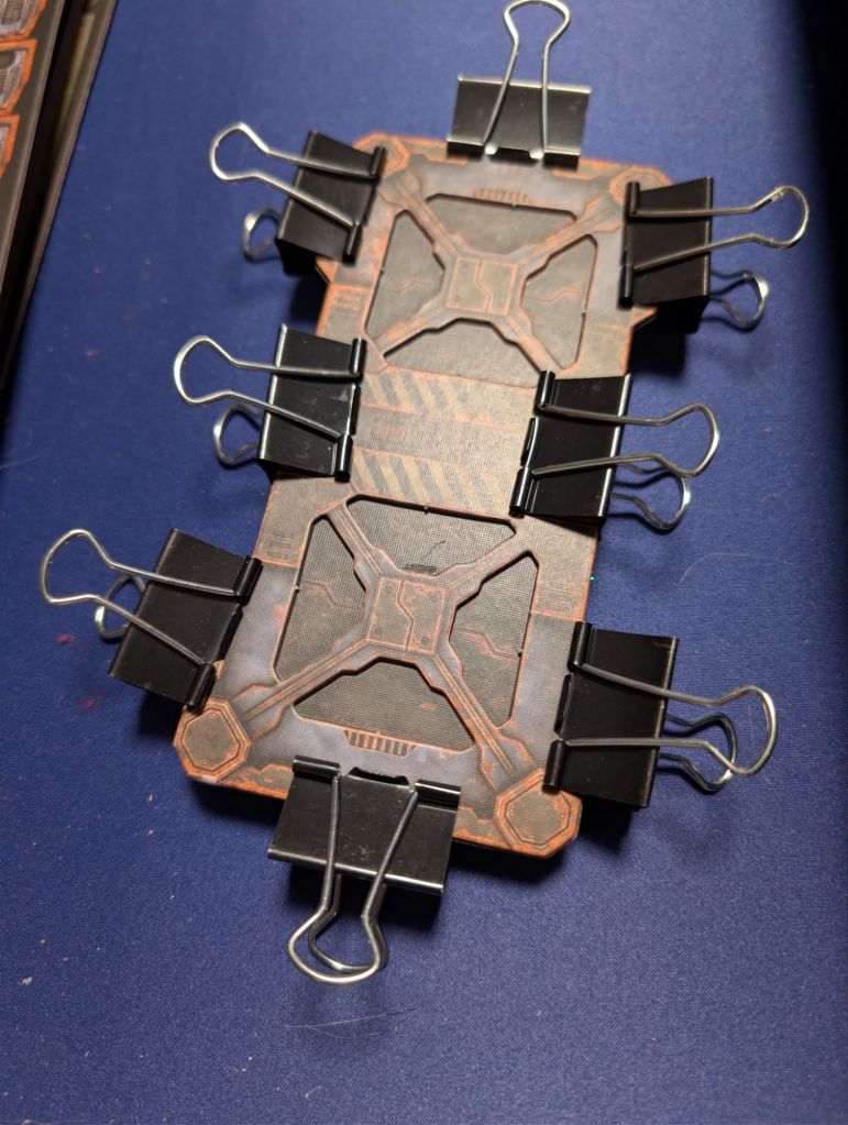 Assembly Complexity: Easy and simple. It is recommended to use PVA glue (basically Elmer’s Glue All or other equivalents). The most complex part is making the connections for the beams which involves filling a little square well with more glue than you think is okay to use, then stick the supports in a big glob of glue. It seems like a bad idea but after a few hours of drying, it makes a surprisingly sturdy connection that won’t budge. Small clamps should also be used to keep the platforms and other multilayered parts together, but in a pinch, binder clips work very well (just don’t let them sit too long or the cardboard might dent a little).